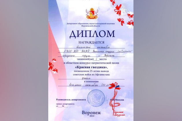 16 апреля 2014 года прошел финальный этап областного конкурса патриотической песни «Красная гвоздика», посвященный 25-летию вывода советских войск из Афганистана. Ансамбль вокальной студии "Los Cantantes" Воронежского института высоких технологий занял 2 место в номинации "вокальные ансамбли 16-25 лет".