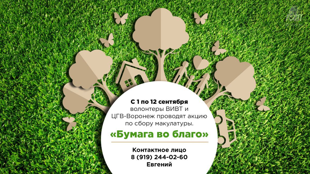 C 1 по 12 октября волонтёры ВИВТ и ЦГВ-Воронеж, совместно с отрядом студентов-волонтёров «Бегущие в ночи», предлагают всем принять участие в акции "Бумага на благо" по сбору макулатуры. Мы призываем всех желающих принять участие в акции, отдав ненужную бумагу или бумажные изделия!