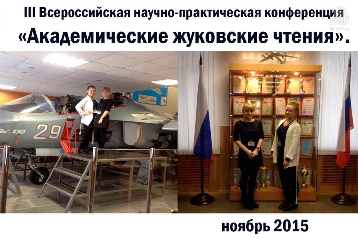 25-26 ноября при поддержке главного командования воздушно-космических сил российской федерации и Управления начальника войск радиоэлектронной борьбы вооруженных сил российской федерации в ВУНЦ ВВС «военно-воздушной академии имени профессора Н.Е. Жуковского И Ю.А. Гагарина» состоялась III Всероссийская научно-практическая конференция «Академические жуковские чтения». В конференции приняли участие студентки ВИВТ Гордиевская Ксения и Алина Зверева.